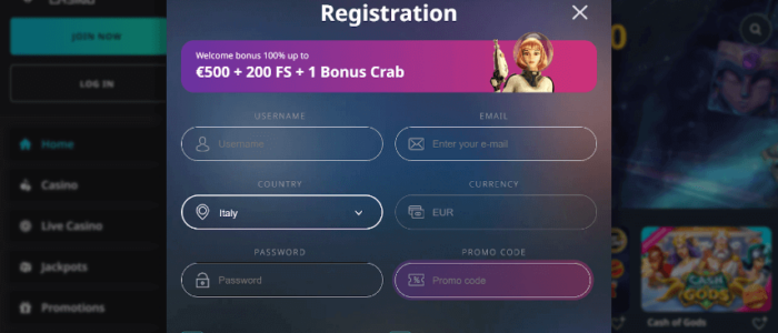 El proceso de registro de una cuenta es sencillo. Requiere información básica sobre usted, como su nombre, dirección y fecha de nacimiento. Para recibir material de marketing, también debe rellenar los campos correspondientes y aceptar los términos y condiciones.