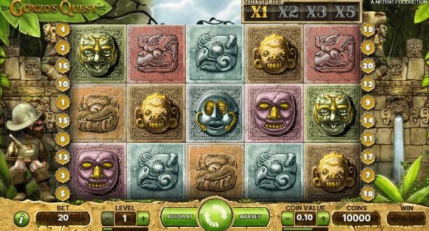 Gonzo’s Quest tiene 20 líneas de pago. Necesitas 3, 4 o 5 símbolos iguales o símbolos wild en cualquier línea para ganar. Las combinaciones se forman desde el carrete más a la izquierda hacia la derecha.